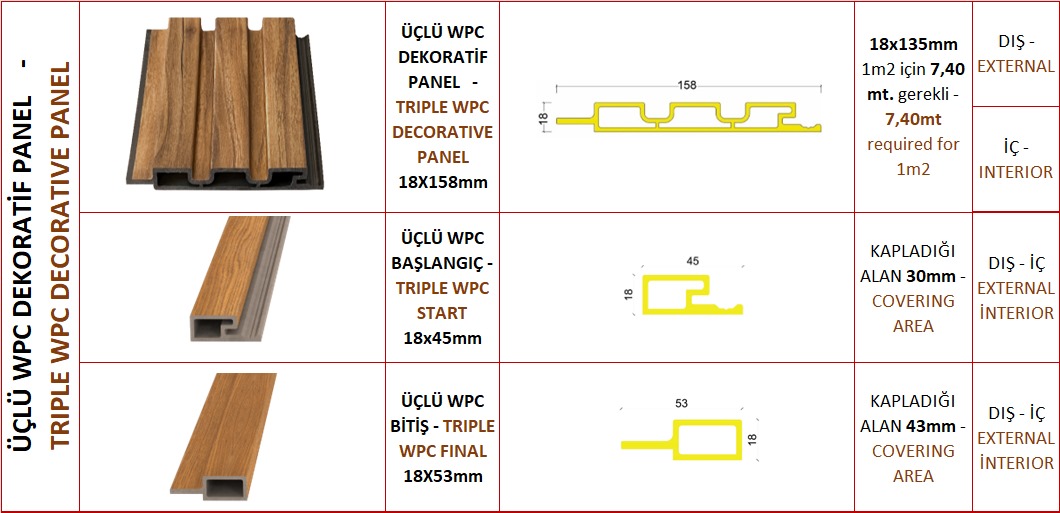 WPC duvar panelleri, ahşap lifi ve plastik polimerlerinin belirli oranlarda karıştırılmasıyla üretilen kompozit malzemelerdir. Bu karışım, hem ahşabın doğal görünümünü hem de plastiklerin uzun ömürlülüğünü ve dayanıklılığını sunar. İç mekanlarda şıklık ve zarafet, dış mekanlarda ise dayanıklılık ve düşük bakım gereksinimleri açısından tercih edilirler.