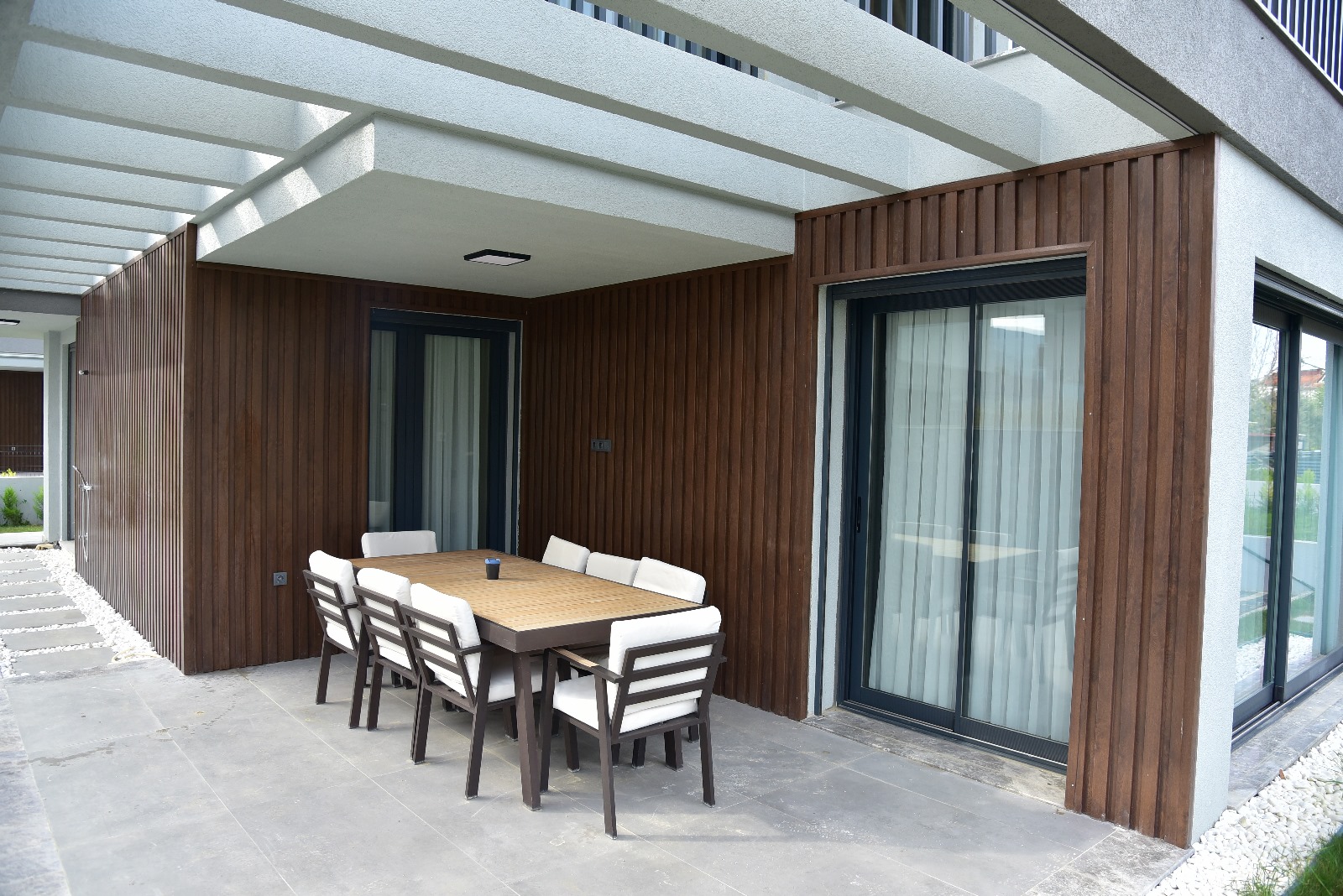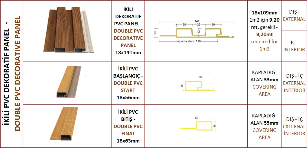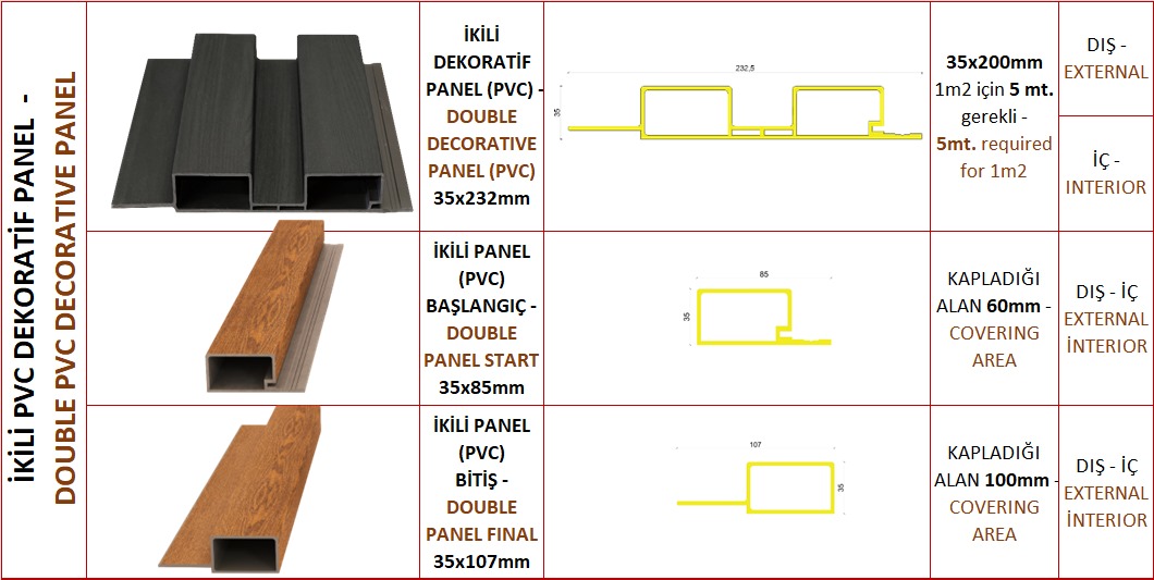 - Estetik Görünüm: WPC paneller, doğal ahşap görünümlerini taklit ederek şık ve modern bir atmosfer yaratır. Ahşap doku ve renk seçenekleri, çeşitli dekorasyon stillerine uyum sağlar.