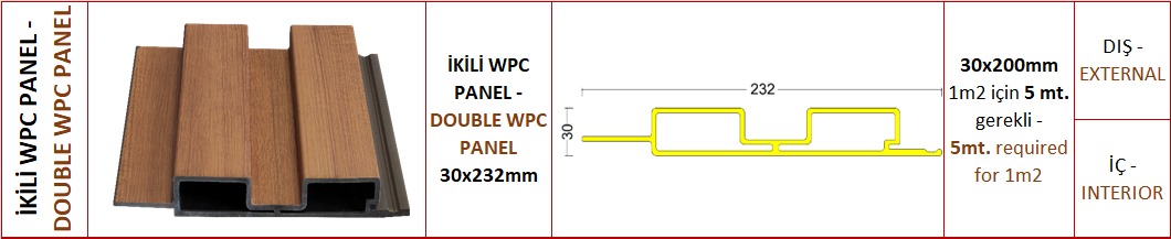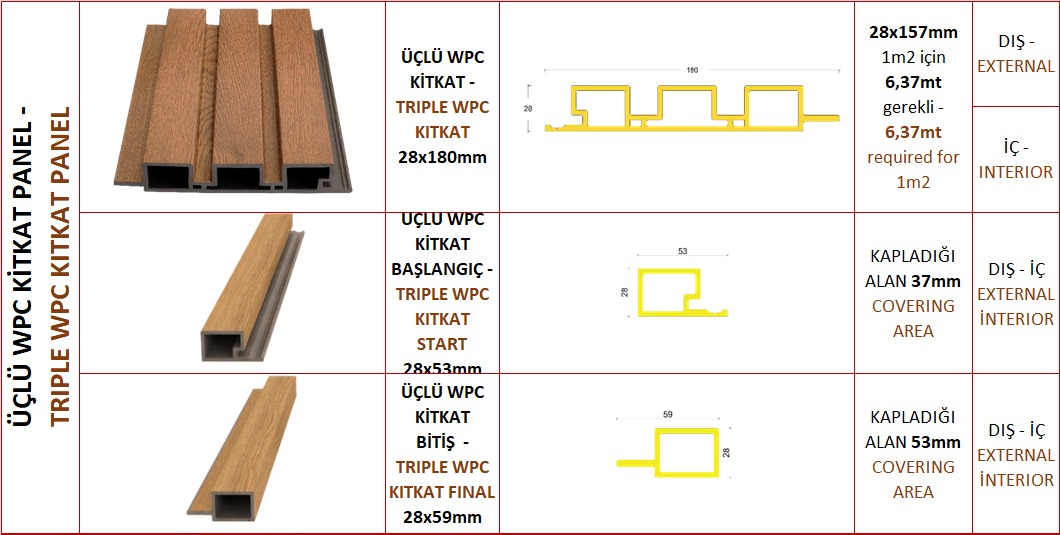 - Dayanıklılık: WPC paneller, su, nem, UV ışınları ve zararlılar gibi dış etkenlere karşı dayanıklıdır. Bu özellik, panellerin uzun ömürlü olmasını sağlar.